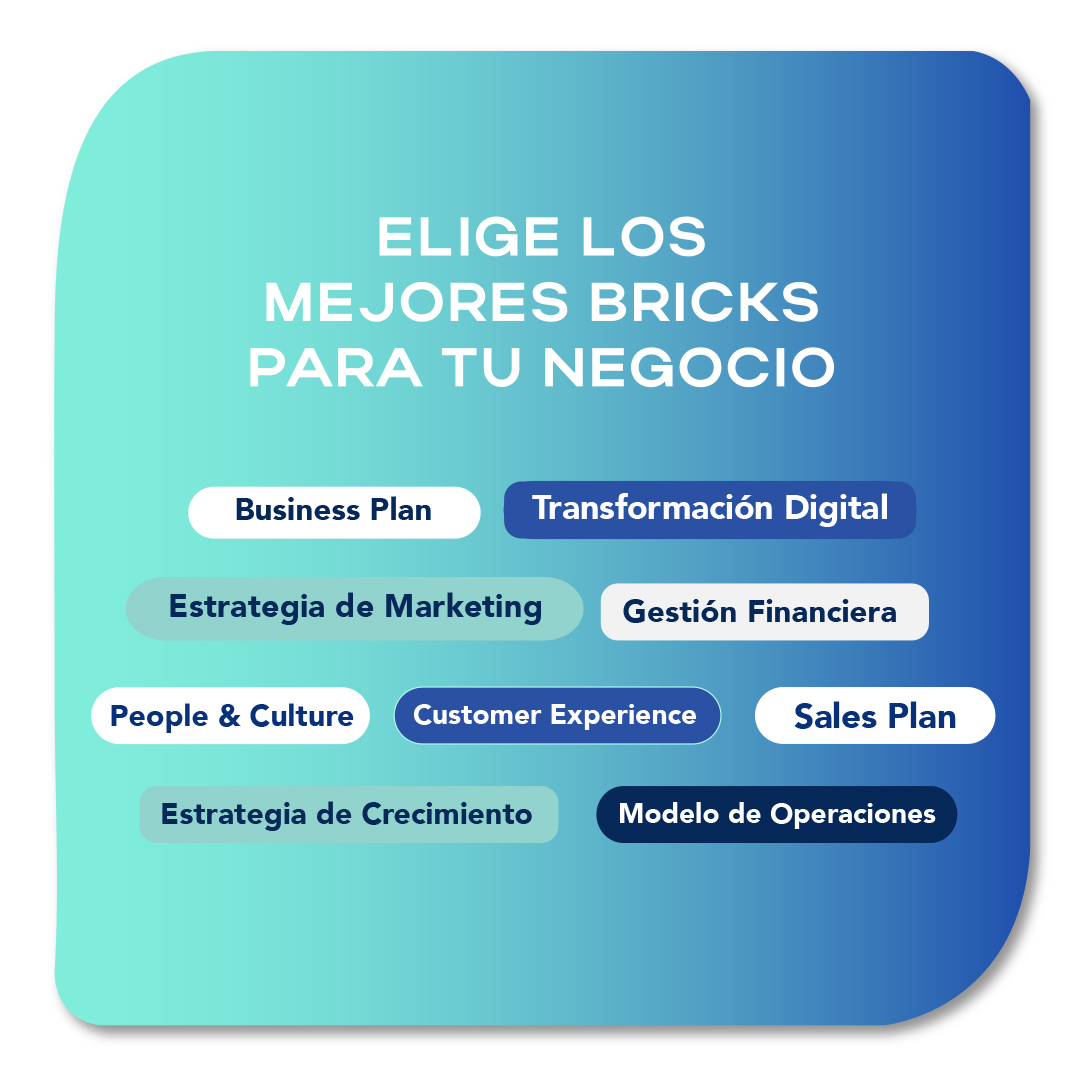 Elige tus BRICKS, sigue tu BLUEPRINT y construye tu proyecto paso a paso, con el acompañamiento de expertos y la flexibilidad que tu negocio necesita.